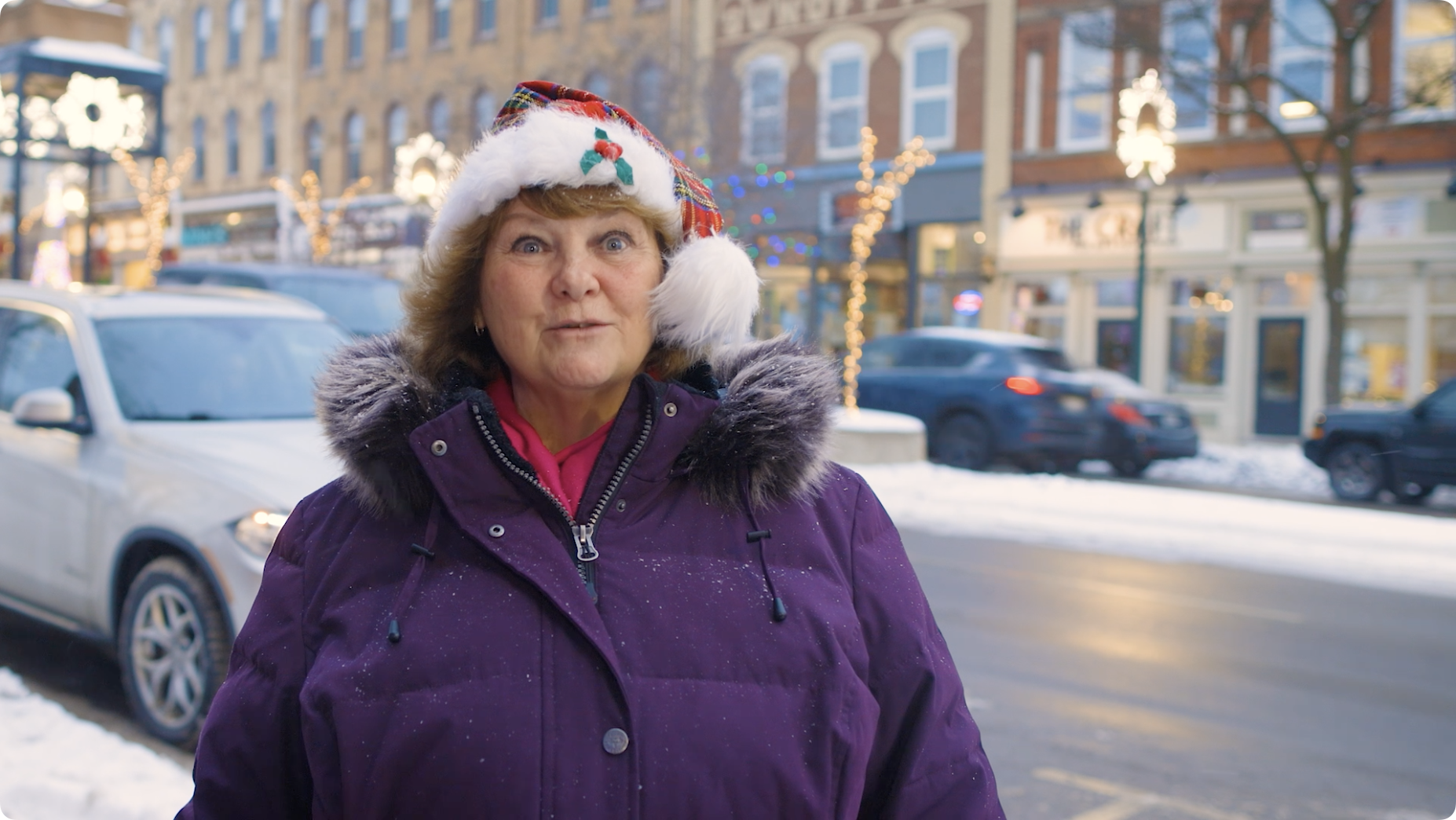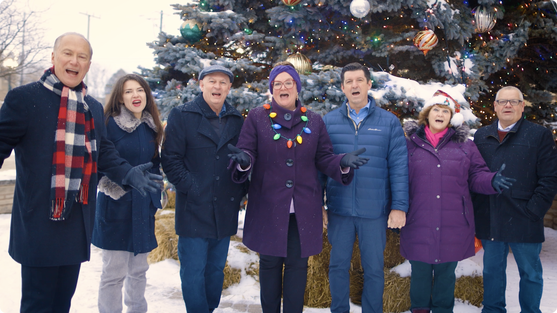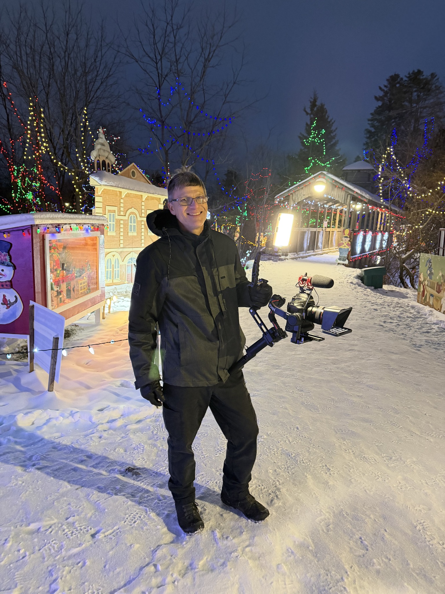 AOS has been making this Holiday Greeting video for the Town of Orangeville over the years – no matter how cold! Kaycee Gardens and Broadway provided a warm, sparkly backdrop for the town’s courageous council members. The Canon EOS full frame sensor and a large-aperture 24mm 1.4L lens soaked up the ambient light, resulting in a beautiful image that switches to photography in an instant.