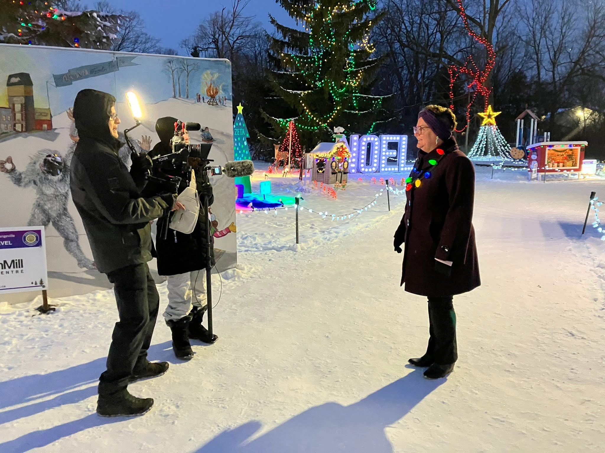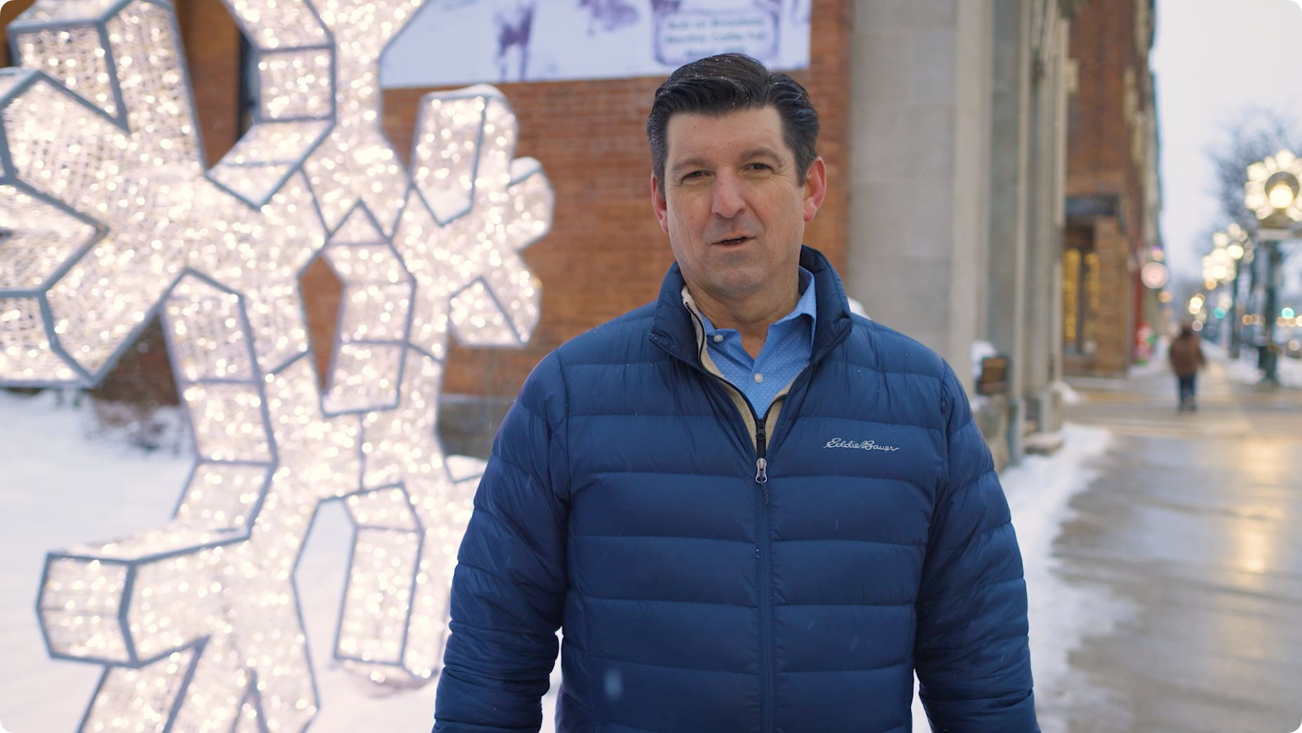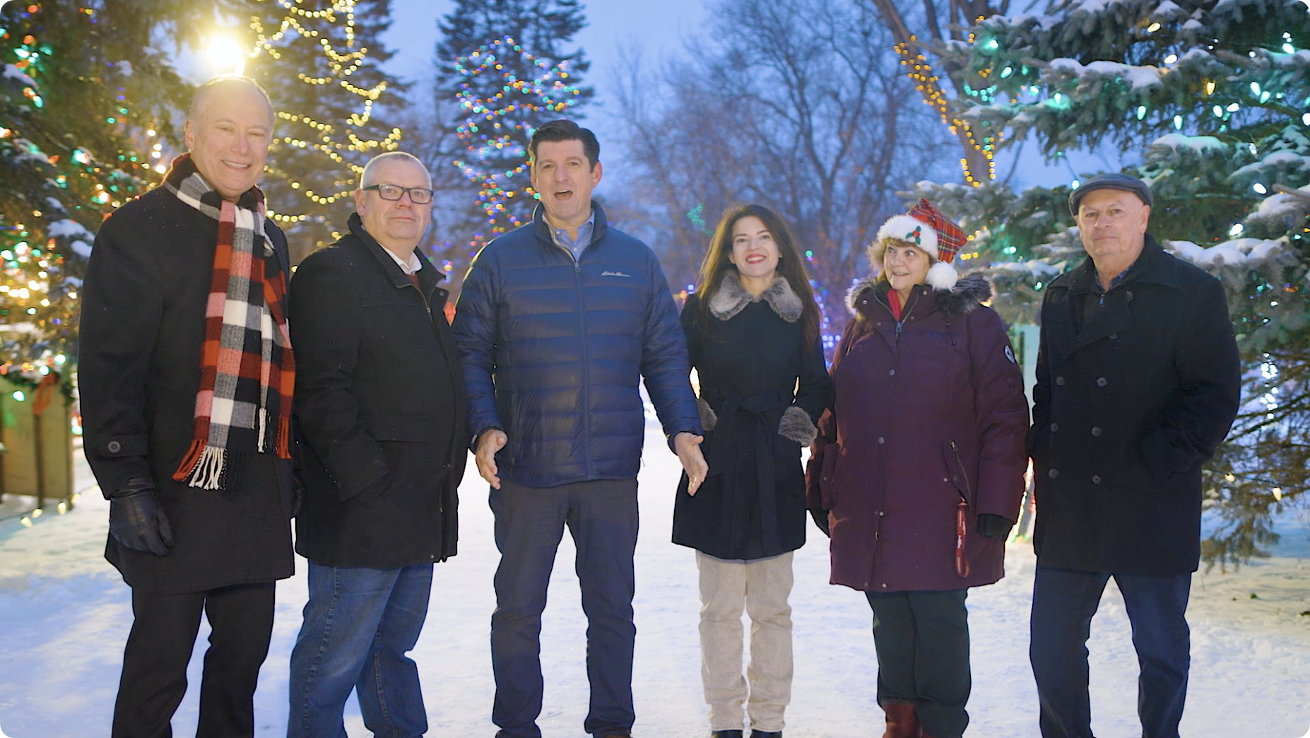 AOS has been making this Holiday Greeting video for the Town of Orangeville over the years – no matter how cold! Kaycee Gardens and Broadway provided a warm, sparkly backdrop for the town’s courageous council members. The Canon EOS full frame sensor and a large-aperture 24mm 1.4L lens soaked up the ambient light, resulting in a beautiful image that switches to photography in an instant.