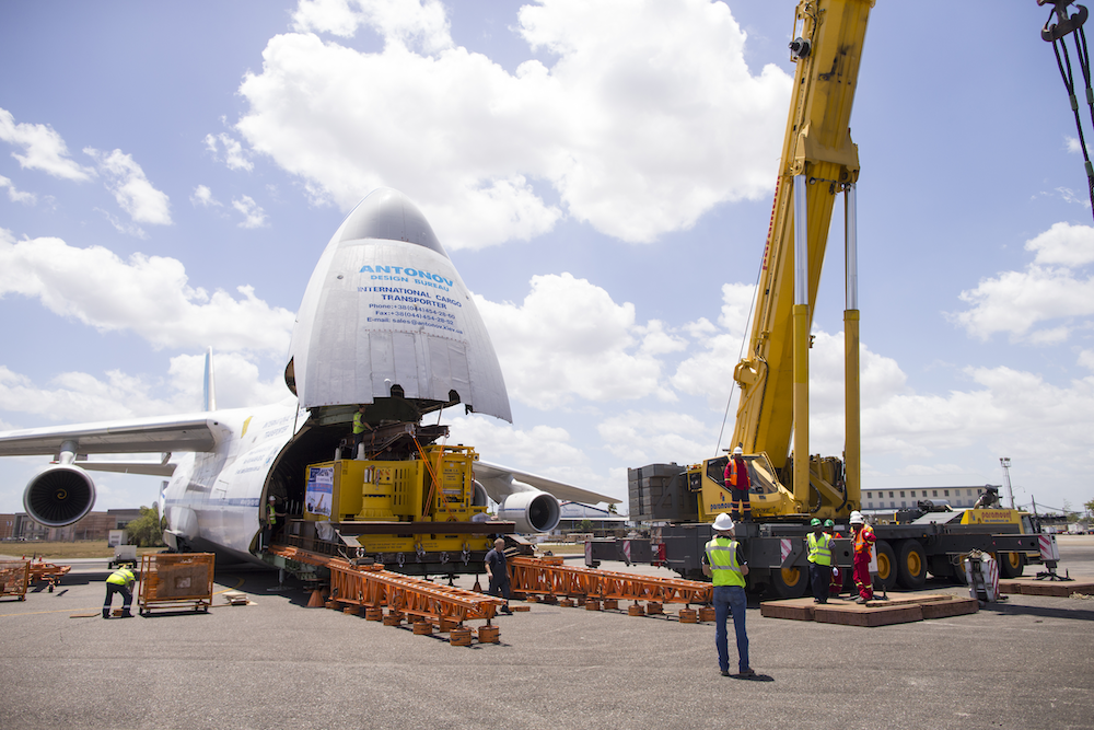 The Juniper “trees” arrive at Piarco airport in an Antanov “heavy cargo” plane.